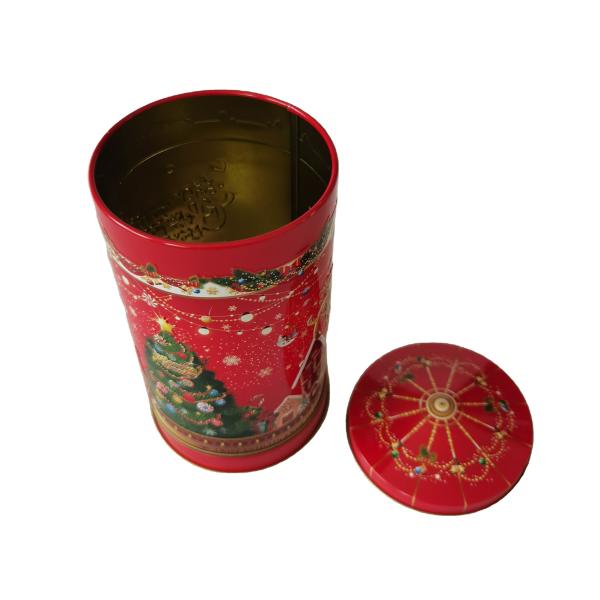 | Bulk Christmas Tins | Shape: Round Size: D95x175 mm Logo: Customized Logo Feature: Recyclable Eco-friendly Material: Metal Tin Standard: Food Contact Grade Design: Customized Christmas Themed Printing: Offset Full Color Printing Surface Finishing: Glossy/Matt Varnish |