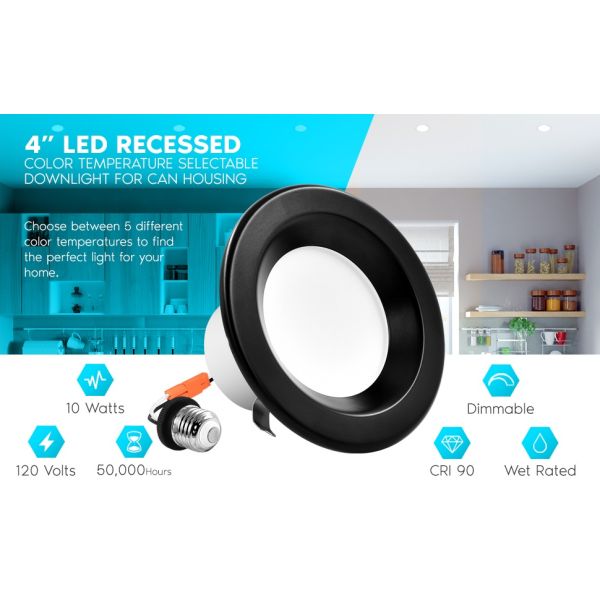 5 CCT SELECTABLE - Not sure what recessed lighting color temperature you are looking for in your home? Each 4 inch dimmable LED downlight has a simple to use switch on the back that can change your lights to 2700K warm white, 3000K soft white, 3500K natural white, 4000K cool white, or 5000K bright white. Your home ceiling can lights will be adjustable through 5 color temperatures until you find the perfect light to select for your space.