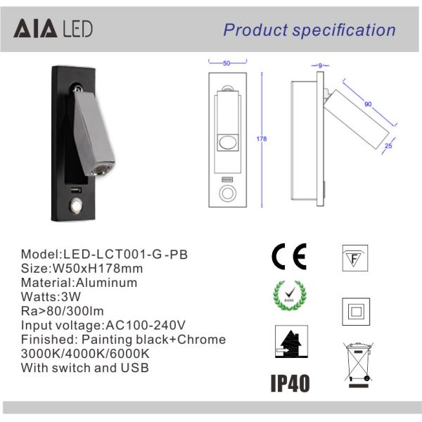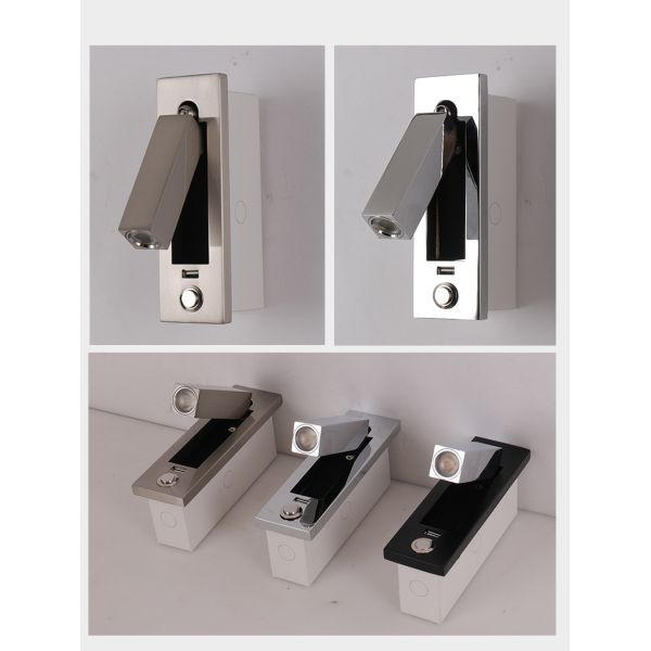 impaction hotel wall light with usb port 3W usb book lighting rechargeable headboard led bed wall light