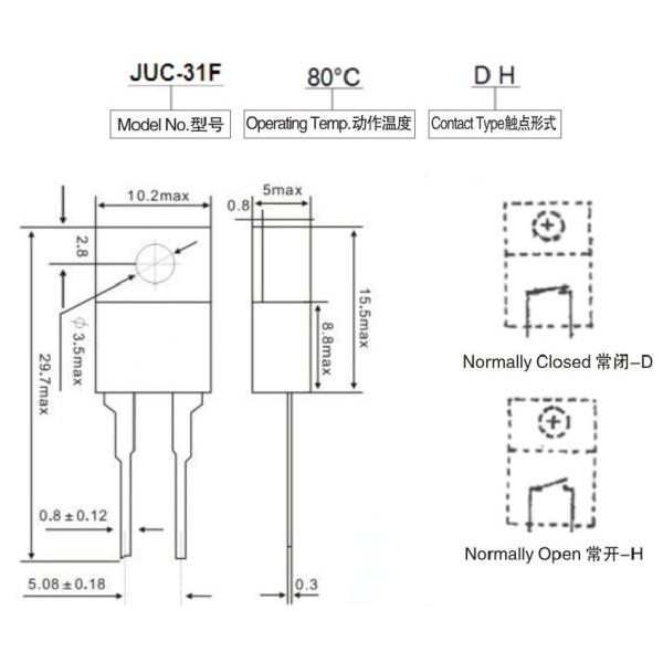 JUC-31F Thermal Protector Switch, TO220 Temperature Switch