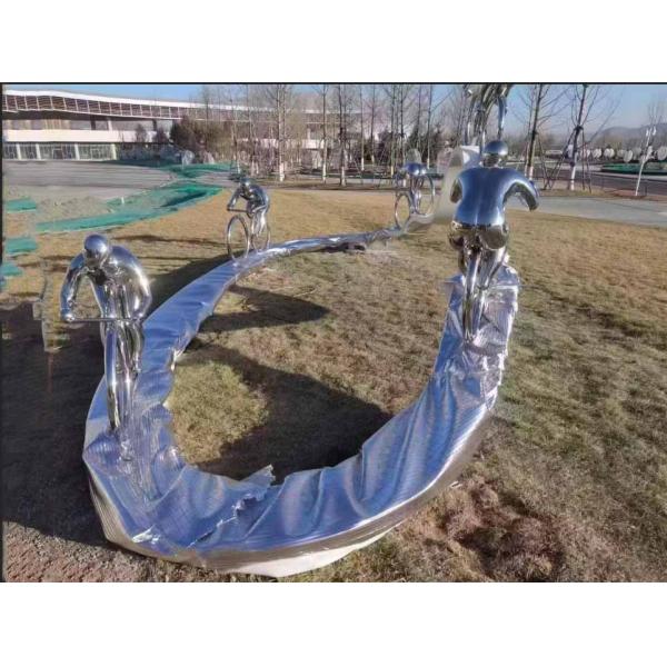 The Stainless Steel Garden Sculpture was designed by a young sculptor for one Citizen garden outside.This outdoor modern art sculpture was designed a group of bicycle athlete ride on track very hardly which located in WUHAN city.It suit be put outside as the art decoration.It was made of 316L stainless steel which can be lasted long time even in the acid, moist environment.