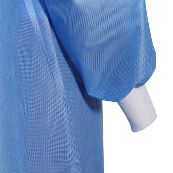 The reinforced surgical gown is made of SMS, SMMS, SMMMS materials that meet international standards. It adds a chest sticker and two sleeve stickers to the standard surgical gown. It has high barrier properties to bacteria and liquids, high tensile strength, not easy to pilling and falling impurities, and has good antistatic effect and three anti-effect (anti-alcohol, anti-blood, anti-grease), designed for procedures with high risk of infection or large fluid flow.