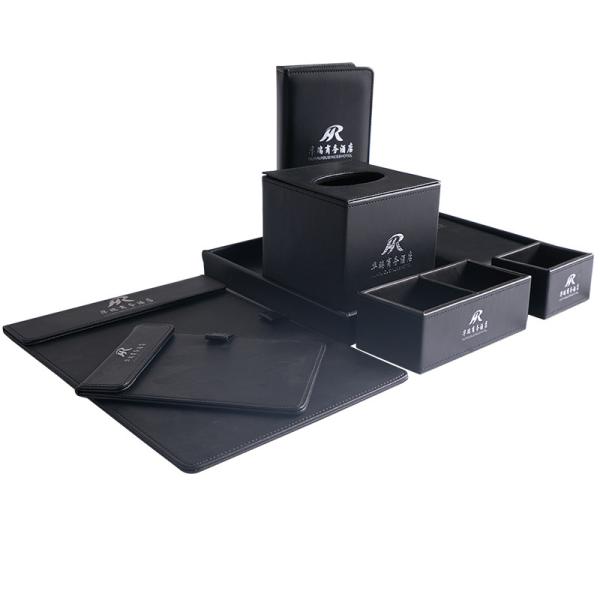 Advanced Beige Leather Finished Leather Hotel Bathroom Supplies Set For Sell