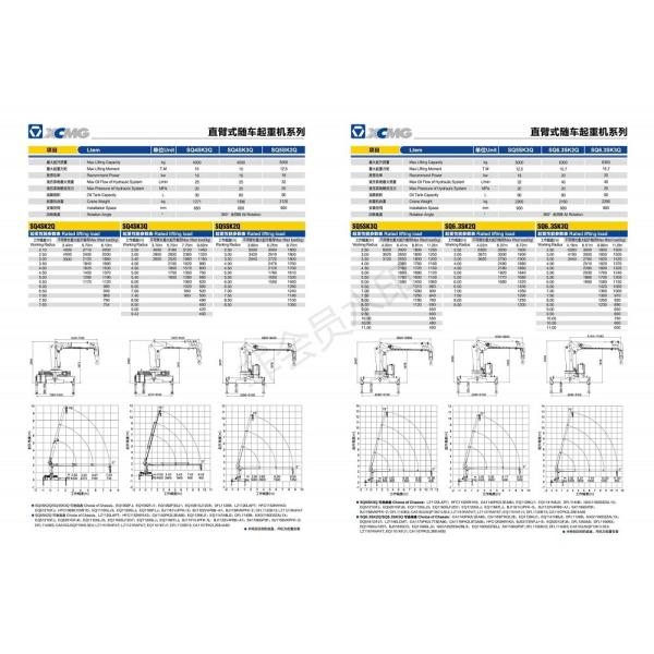 Technical parameters of XCMG 4t Truck Mounted Crane Model SQ4SK3Q Max Lifting Moment 8.40/10 T.M