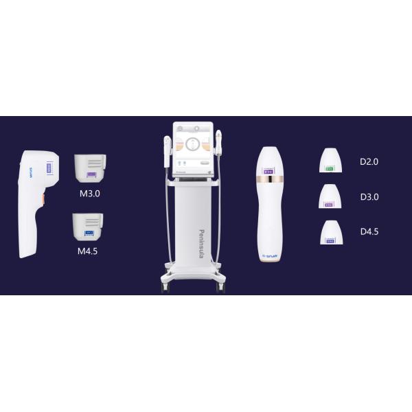 d.Apply energy to where the subcutaneous depth is 4.5mm, 3.0mm, 2.0mm, improve subcutaneous structure from deep to superficial shrink aging collagen and stimulate collagen proliferation and reorganization.