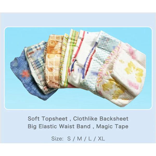 Material Details | Japan SAP; Georgia Pacific USA Pulp; Super-absorbent Core; Green Leak Guard; Green ADL; Wet Indicator; Colorful Backsheet; Elastic Waist (Single); PE film; PE Tape; Natural Aloe Perfume. |