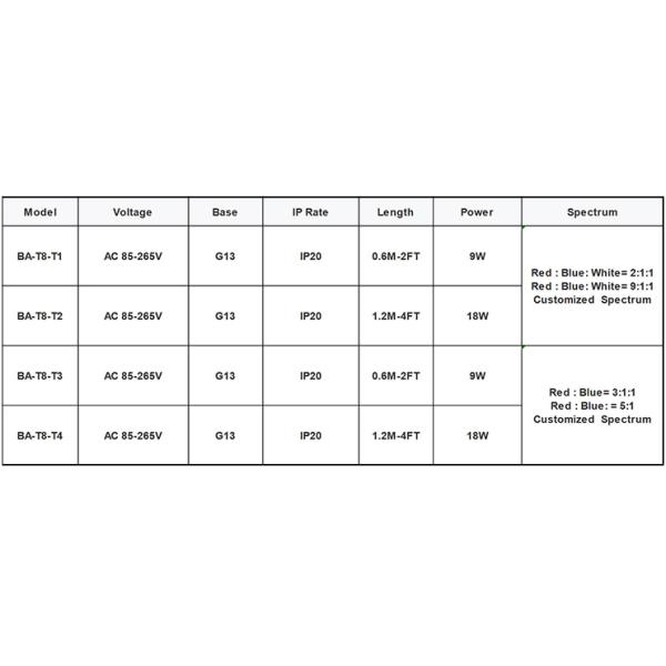 Full Spectrum T8 LED Grow Tube Light - BAVA LED grow lights 2ft 4ft provide indoor plants with full-spectrum sunlight replacement.It provides the most reasonable grow light wave based on the ratio of the absorption of the plants