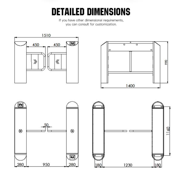 Swing Turnstile ---can be compatible with IC card, ID card, barcode card, fingerprint reading card, face recognition device used for staff, provide civilized, orderly access methods, effectively manage the access of staff. It can be widely used in the station, wharf subway, factories, office buildings, hotels, clubs, intelligent communities, enterprises, and institutions that need intelligent access management.