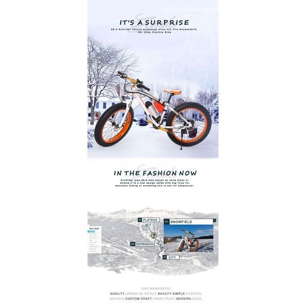 Off Road 2 Wheel Electric Bike Outdoor 26“ Tires Electric Snow Bike 48V