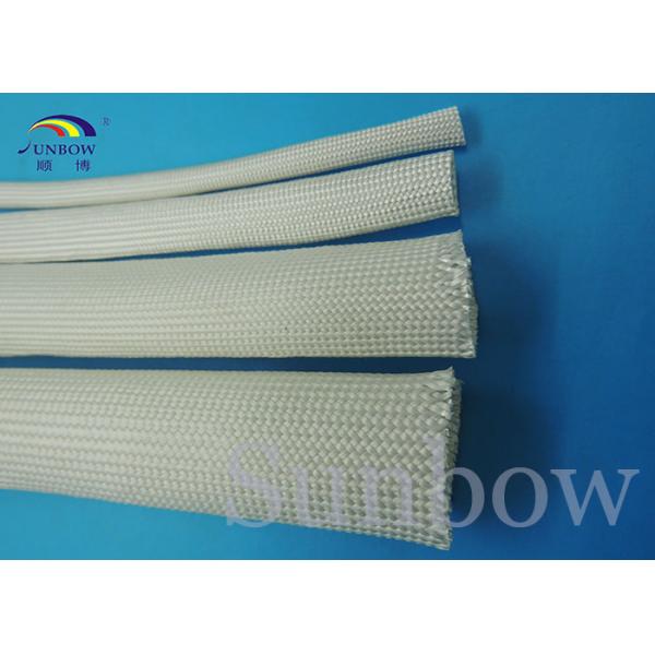 SUNBOW ID 10mm heat treated high temperature fiberglass sleeving white VW-1 fire resistant is braided with non-alkali fiberglass yarn and then treated in high temperature.