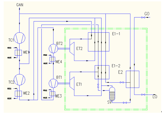 of nitrogen turbo-compressor after being rewarmed in the main heat