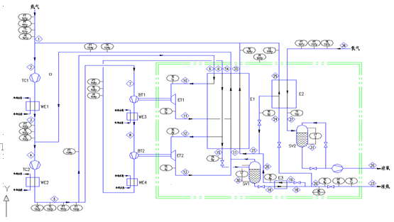 In order to guarantee the optimum technical and economical targets, the advanced software for performance calculation is used to calculate and analyze the optimized process while the program developed by Hangyang itself and verified in many air separation plants is used for rectification calculation.