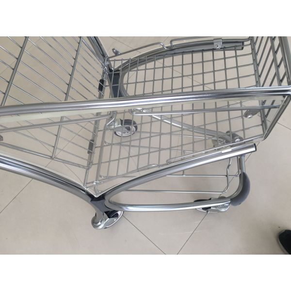40L small size steel tube airport shopping trolley,this kind of trolley have arclic glass on two side.It can be printed customer's logo on surface of arclic glass.It is usually used in airport shop.