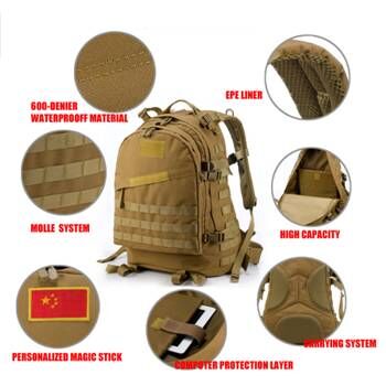 2. MOLLE SYSTEM: Backpack plug system function is to increase the number of items to carry, easy to conjugate irregular hanging items. A professional mountaineering backpack, plug-in system is essential. Backpack external system can be divided into specific top hung, side hung, hung back, bottom hung, usually using fixed point or bar fixation. Users do not have to worry about travel, travel, travel, hiking the problem of insufficient space.