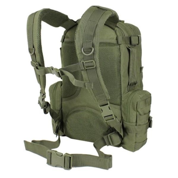 With this Outdoor Pack, you'll be equipped for any adventure without being weighed down by an unnecessarily large backpack. With five compartments sized for storing whatever you need to take with you, you'll have plenty of space to store everything from a laptop or tablet to smaller accessories in the bottom front pocket. Heavyweight webbing supports modular attachments while mesh pockets and an organization panel in the top front compartment makes organizing all of your gear simple. Sternum and side compression straps along with a detachable waist belt ensures the pack will fit closely and won't bounce around when you're on the move. For hydration purposes, this pack can hold a hydration bladder up to 3L and water bottles in the two side compartments.