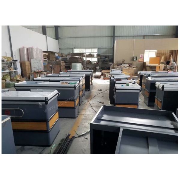 Buy Wooden And Steel Automatic Cashier Checkout Counter / Supermarket Checkout Counter With Conveyor Belt at wholesale prices