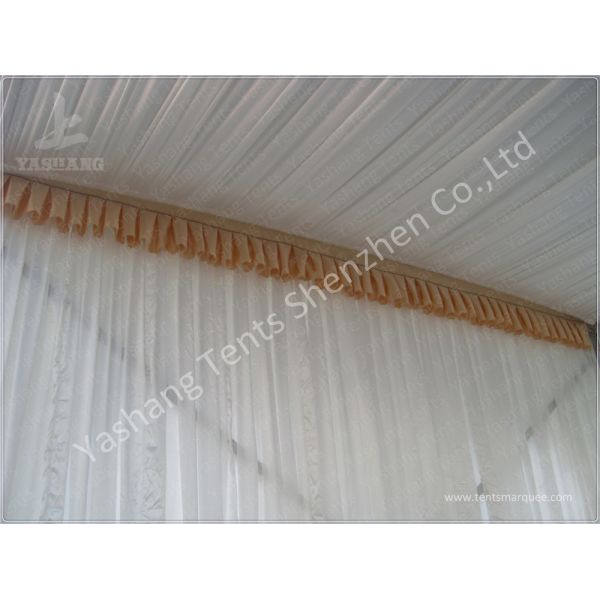 Thanks to high-quality materials, the interior design of the tent is always a visual highlight. And it goes without saying that fire safety and long material life are standard as well. At Yashang, tent decorative lining system is available in two different material options to suit customer's different budgets: economical option and luxury option. Economical lining decoration is made of high gloss satin cloth, non flame retardant but low cost, and luxury lining decorations are made of Trevira CS, a flame retardant material that fulfills the highest requirements. The material can be hung onto wire with karabiner hooks, into the available tent profile using the keder, or onto the eave beams with rubber loops. These options make hanging the material simple and easy.