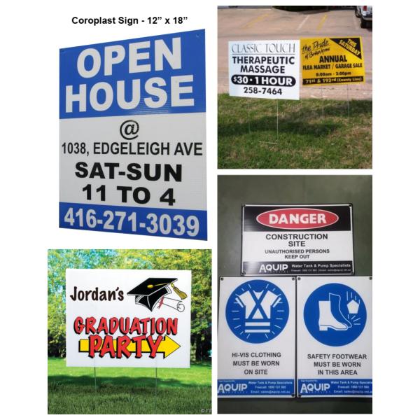 Corflute signs are a low cost, strong, light-weight, weatherproof and highly effective method for advertising outdoors or indoors. Our corflutes can be printed a range of sizes and easily mountable making them perfect for temporary signage, construction sites and low cost advertising.