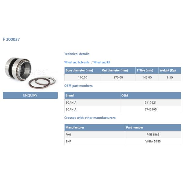 | 2742995 Bearing Size: | 110.2 x 170 x 146mm |
