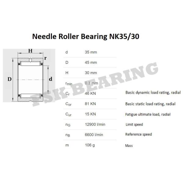 | Same Bearing: | NK 3530 Bearings/ NK 35/30 Bearing / NK 35/30 TN Bearing / NK35/30-TV-XL Bearing |