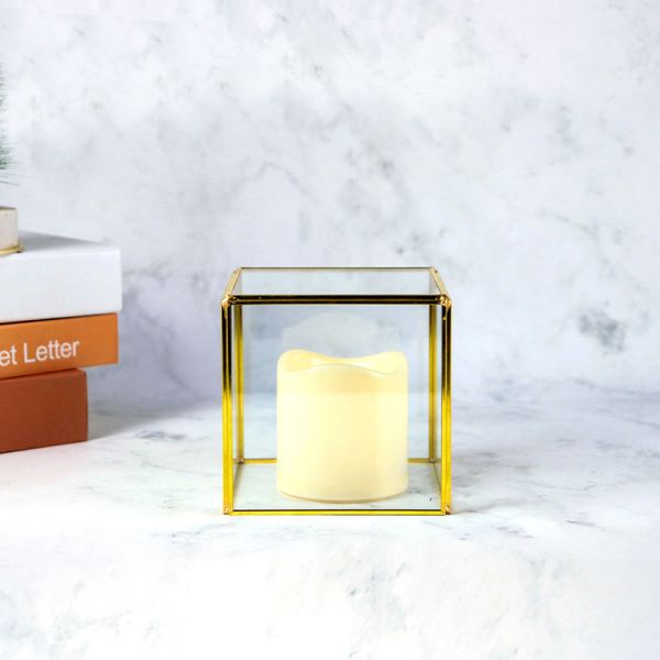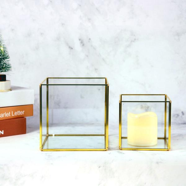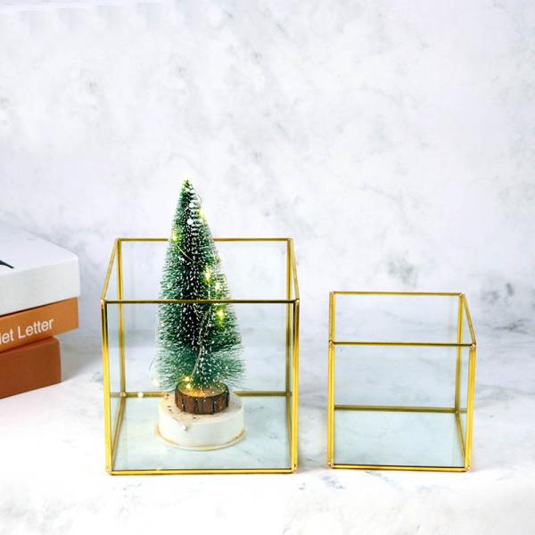 Glass greenhouse dust cover birthday candlestick Glass cover soft decoration square copper strip desktop storage box