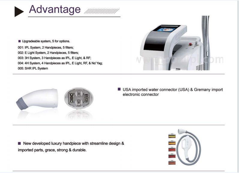 | Feature: | Hair Removal, Blood Vessels Removal, Pigment Removal, Skin rejuvenation |