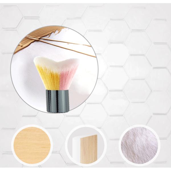 | Type | Triangle shaped Kabuki Makeup Brush with Yellow and pink nylon hair |