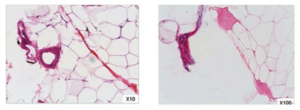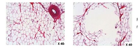 4, Fat cell disruption while epidermis, blood vessels and nerves remain unharmed.