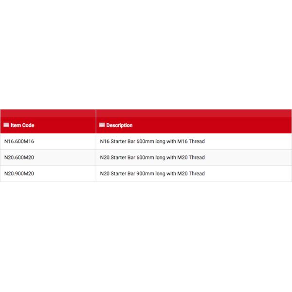 Measurement12mm x 600mm16mm x 600mm16mm x 750mm20mm x 200mm20mm x 600mm20mm x 750mm20mm x 1000mm