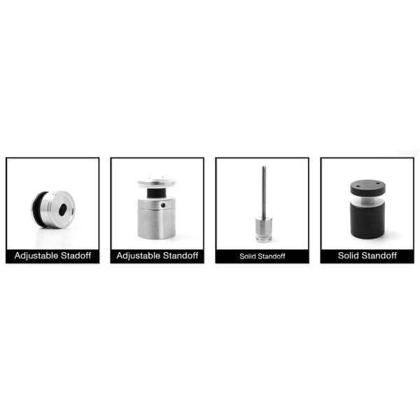 Standoffs can be made of stainless steel 304 and stainless steel316. The common finishes are satin and mirror Gold color is morepopular in middle east countries while European clients prefermatte black which makes the project classic.