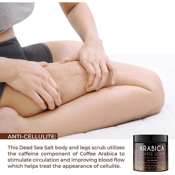 for an extra exfoliating kick. By massaging our organic anti cellulite coffee body scrub onto any