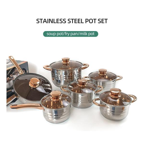 pot 3.9L, 24x14.5cm stock pot 6.6L, 24x7.5cm wok 3.4L (with black non-stick coating), 16x10.5cm stock pot 2.1 L |