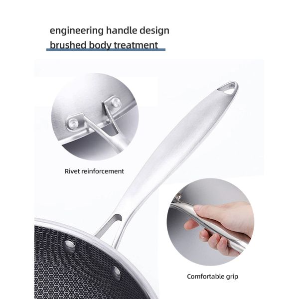 | Product name: | Stainless Steel Non Stick Honeycomb Round Stir Frying Pan |