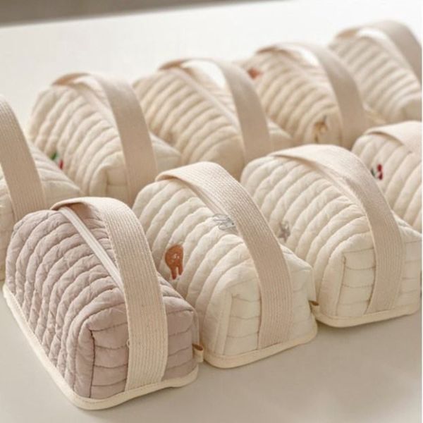 Large Capacity Luxury Soft Cotton Makeup Pouch Quilted Portable Travel Cosmetic Bag Luxury