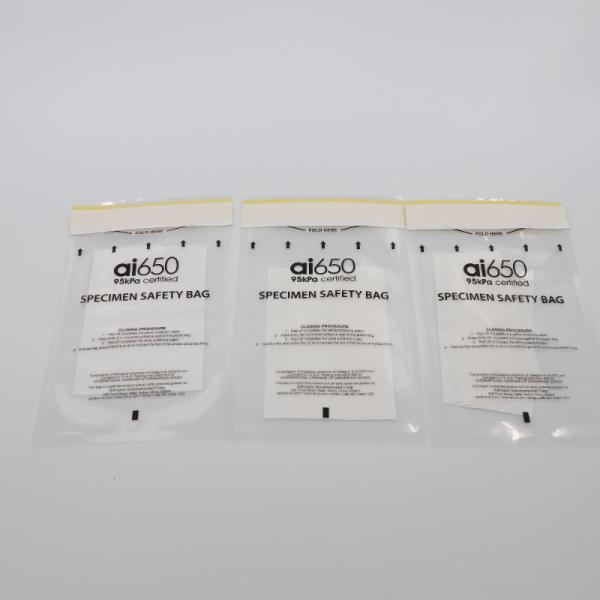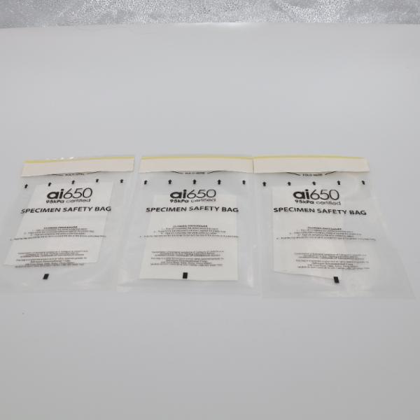| APPROVED and CERTIFIED: | The zip locking specimen lab bags conforms to specimen handling guidelines for secondary containment. The bright red and black bio hazard print is easily noticed and meets OSHA specs V.A. infirmaries and other major medicinal institutions. |