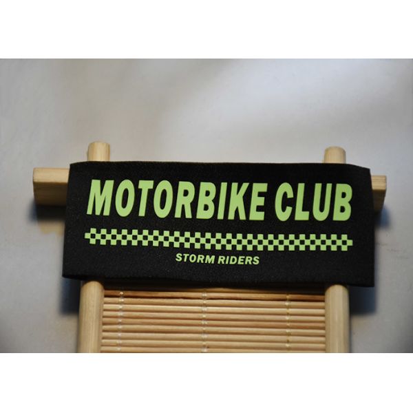 | Product type: | 0.2mm silicone logo printed on black polyester cloth for clothing labels |