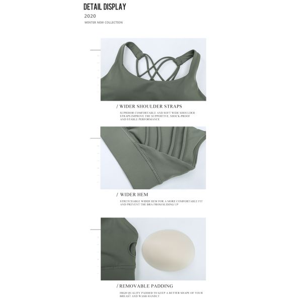Fitness Women Lulu Yoga Cross Back Sports Bra Push Up High Impact Naked Feeling Gym Bra