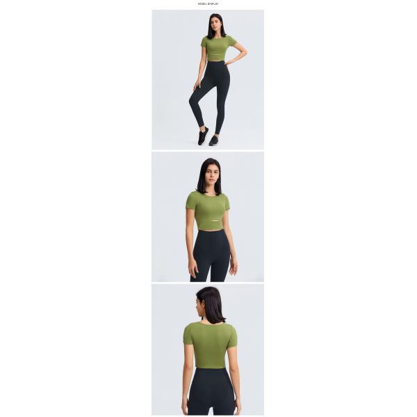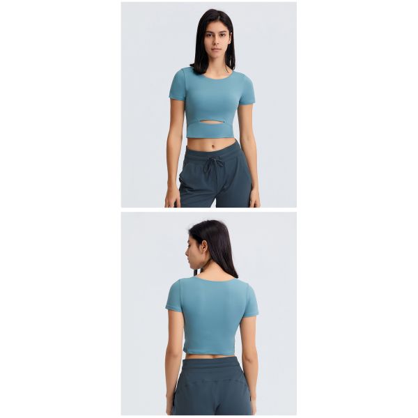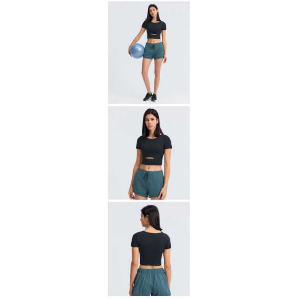 Women Slim Fit Light Weight Yoga Fitness Naked Feeling Padded T-shirt Fashion Gym Cropped Top