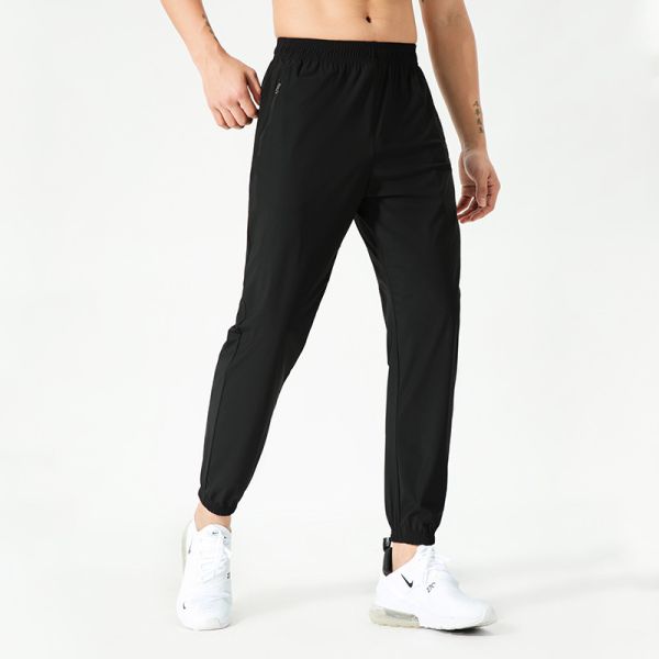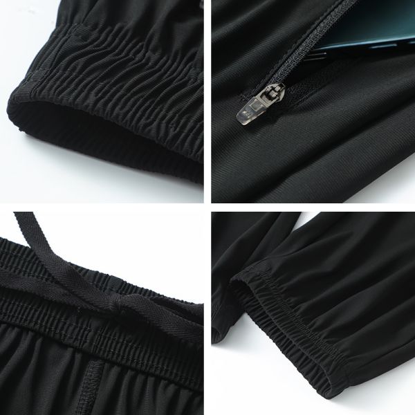 Men's Ice-Silk Zipper Side Pocket Casual Pants Outdoor Plus Size Loose Fit Fitness Quick-Drying Sports Pants