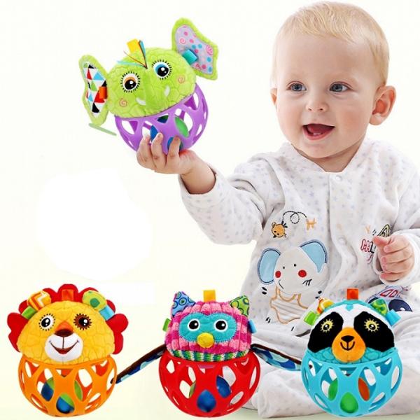 Food Grade Ball Kids Infant Plush Animal Soft Hand Rolling Rattle Toy