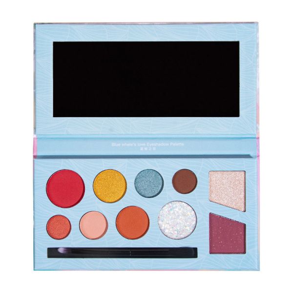 Blue Custom logo Magnet Highlighter Palette With Mirror Window Empty Eyeshadow Brush VOE Cream Blender Paper Recyclable