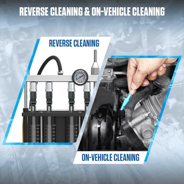 2.[Easy to operate ] :When cleaning, fix the car injector in the socket of the washing tank, add an appropriate amount of 3M cleaning fluid, and the cleaning can be completed after power on; when testing, fix the car injector in the oil separator and add it to the glass tube Industrial alcohol, the test can be completed after power on.