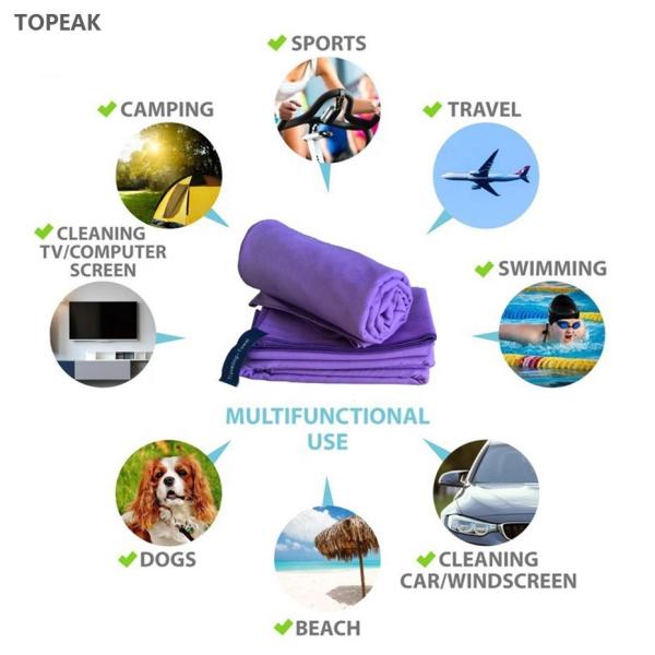 1.Travel towel,camping towel,workout towel:Looking for gym towels for men or women; maybe you need lightweight camping gear,beach towels or a workout towel;or something for sports: fitness, biking, football,swimming,yoga,kayaking;wipe away any unwanted water or sweat with this ultra absorbent microfiber beach towel.