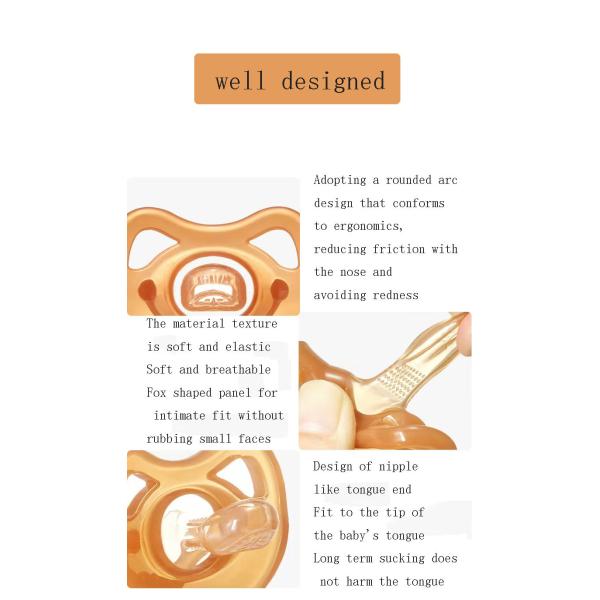 The appearance of a pacifier is generally spherical or similar to the shape of a nipple, which conforms to the baby's mouth shape. Due to the softness of silicone or latex materials, the pacifier can adapt to the strength and frequency of the baby's suction, without causing compression or damage to the baby's mouth and baby teeth. In addition, the cleaning of pacifiers is convenient. When the pacifier is dirty or scratched, it only needs to be cleaned with warm water. If it is particularly dirty, it can be disinfected and sterilized with alkaline disinfectant.