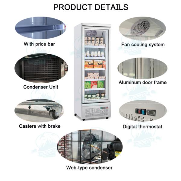 Supermarket drinks vertical showcase refrigerator glass door upright freezer