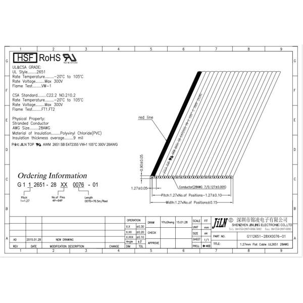26-wire 1.27mm Standard Flat Ribbon Cable for 2.54mm Connectors.