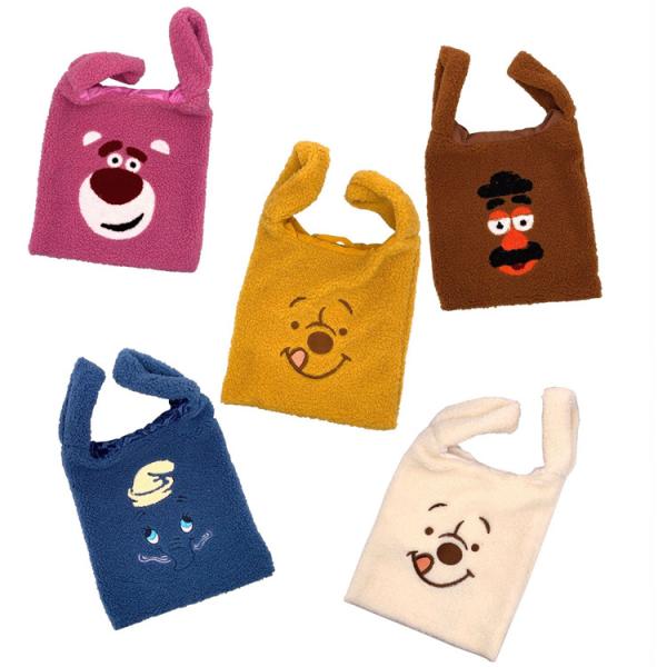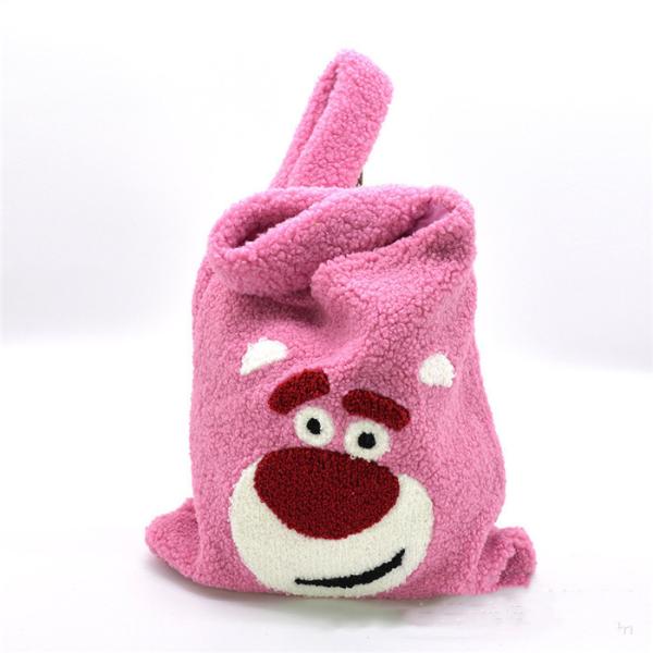 OEM winter cute cartoon embroidered girl shoulder handbag plush shopping bag custom plush toy bag