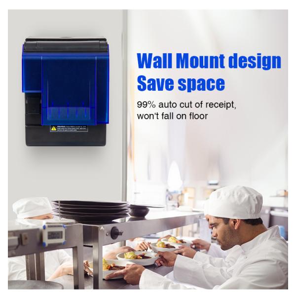 Wall Mount 80mm thermal receipt buzzer kitchen printer with Serial+USB+LAN ports POS billing printer