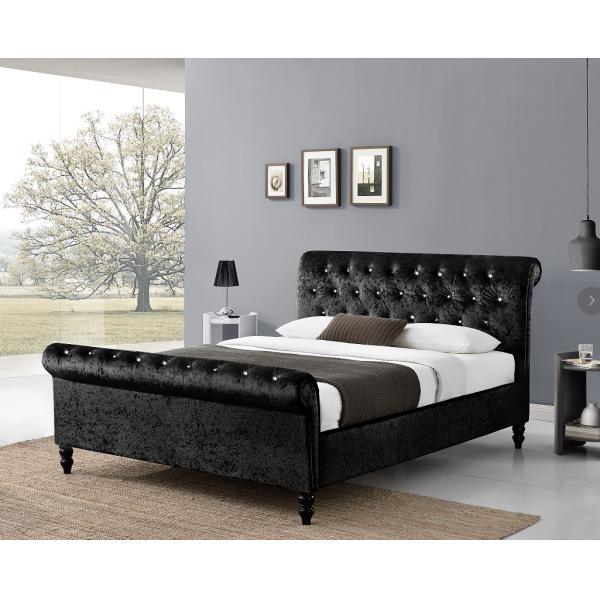 SF831 is a very typical UK chester style bed,it is very luxurious comes with crushed velvet finish,you can see the headboard and footboard are sleigh shapes,spring slats are very strong and let users feel comfortable sleep on the bed.It is a royal bed i think,it is popular both in European and American markets.