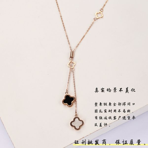 Four-leaf Clover Necklace Female k Gold Rose double-sided black white pearl shell titanium steel necklace Yiwu wholesale